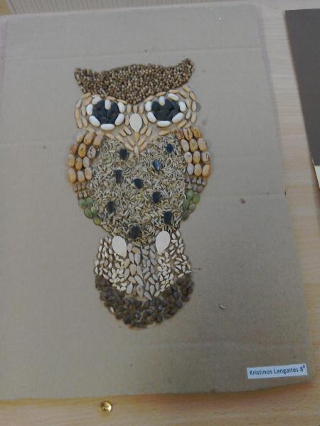 „Šiame darbe labiausiai patiko, kad reikėjo ieškoti įvairių sėklų ir vaisių, o tuo pačiu jis buvo įdomus, nes reikėjo pagalvoti, kaip reikės jas prilipinti“ R.Musteikaitė 8c