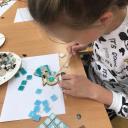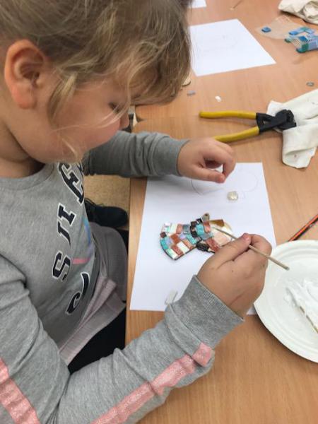 Lapkričio 29 dieną 4b, 4c ir N1 klasių mokiniams vyko edukacinė programa „Stiklo mozaika“, kurią vedė Keramikos studijos mokytoja. Mokiniai ir mokytojos prisilietė prie stiklo mozaikos kūrimo ir kūrybinių dirbtuvių metu susikūrė įmantrių mozaikos darbų.
